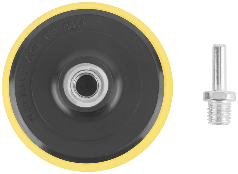 Диск шлифовальный с липучкой FIT IT используется с алмазными гибкими шлифовальными кругами и другими шлифовальными и полировальными кругами.В комплекте переходник со штифтом для установки диска в патрон дрели. Гайка с внутренней резьбой М14 дает возможность использовать диск совместно с УШМ, переходник с цилиндрическим хвостовиком позволяет использовать диск с электрические дрелью. Диск имеет демпфирующие свойства за счет подложки из вспененного этиленвинилацетата (ЭВА) высотой 9 мм. Диск обладает высокой эластичностью и применим при обработке неровных поверхностей. Нейлоновая липучка с крючками способствует быстрой установке или замене шлифовальных или полировальных кругов.