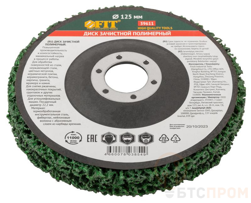 Диск зачистной полимерный FIT HQ предназначен для очистки гладких металлических поверхностей от ржавчины и краски. Используется с УШМ. Благодаря специальной структуре диски гораздо меньше загрязняются и нагреваются при работе по сравнению с привычным абразивным инструментом. После снятия покрытия не так сильно заглубляются в материал зачищаемой поверхности. Быстро снимают краску и ржавчину с поверхности. Не размазывают краску по поверхности. Оставляют после себя гладкую поверхность. Внимание! Для наилучшего результата и продления срока службы оснастки крайне важно соблюдать следующие условия работы: держать обороты не выше 4500 в минуту; работать с минимальным прижимом; стараться избегать углов, отверстий, выступов.