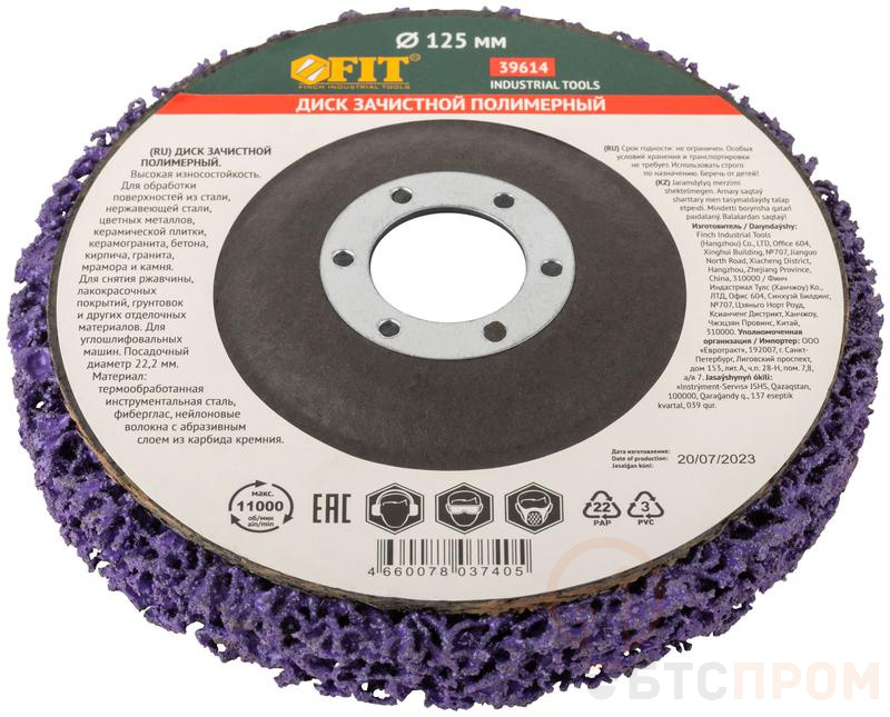 Диск зачистной полимерный FIT IT предназначен для обработки поверхностей из стали, нержавеющей стали, цветных металлов, керамической плитки, керамогранита, бетона, кирпича, гранита, мрамора и камня. Может применяться для снятия ржавчины, лакокрасочных покрытий, грунтовок и других отделочных материалов. Используется с УШМ. Диск имеет высокую износостойкость, грубую зернистость и агрессивную структуру. Адаптируется к поверхности благодаря эластичности, им можно обрабатывать внутренние и внешние скругления, трубы.