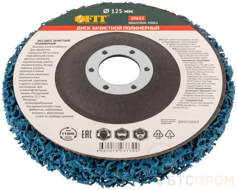 Диск зачистной полимерный FIT IT предназначен для обработки поверхностей из стали, нержавеющей стали, цветных металлов, керамической плитки, керамогранита, бетона, мрамора и камня. Используется с УШМ для снятия ржавчины, лакокрасочных покрытий, грунтовок и других отделочных материалов. Не требует сильного нажима при работе. За счет увеличенного содержания абразивных частиц и объема нейлоновых волокон диск обладает высокой износостойкостью. Грубая зернистость и агрессивная структура повышают скорость выполнения работ. Нейлоновая основа в сочетании с карбид-кремниевым абразивом высокоэффективно зачищает поверхности от различных загрязнений без их повреждения. Усиленная фибергласовая основа обеспечивает высокую прочность диска. Рекомендуется использовать УШМ с регулировкой оборотов и устанавлиать частоту оборотов 4500 об/мин.