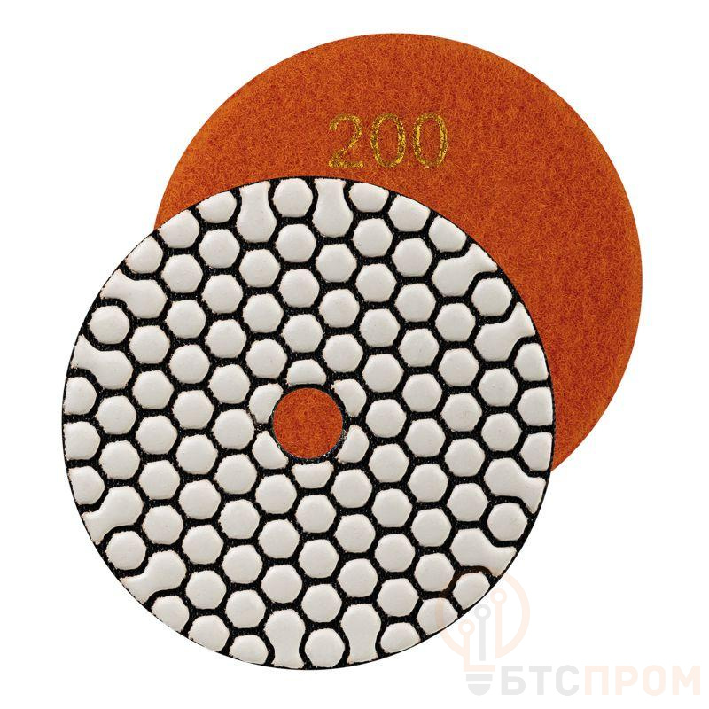 Алмазный гибкий шлифовальный круг KRANZ предназначен для сухого шлифования поверхностей из камня, мрамора, гранита и керамогранита. Конструкция «черепашка» с открытыми сегментами способствует эффективному отводу шлама, что позволяет работать без охлаждающей жидкости. Абразив с зернистостью P200 используется для промежуточной обработки. Рабочая поверхность содержит высокую концентрацию алмазов, а прочная связка из термопластика придает стойкость к нагреву и продлевает срок службы. Гибкая форма позволяет использовать инструмент для шлифовки изделий сложной формы. Липучка позволяет быстро и надежно зафиксировать круг на опорной тарелке. Круг устанавливается на УШМ с опорной тарелкой для алмазных гибких шлифовальных кругов (АГШК).