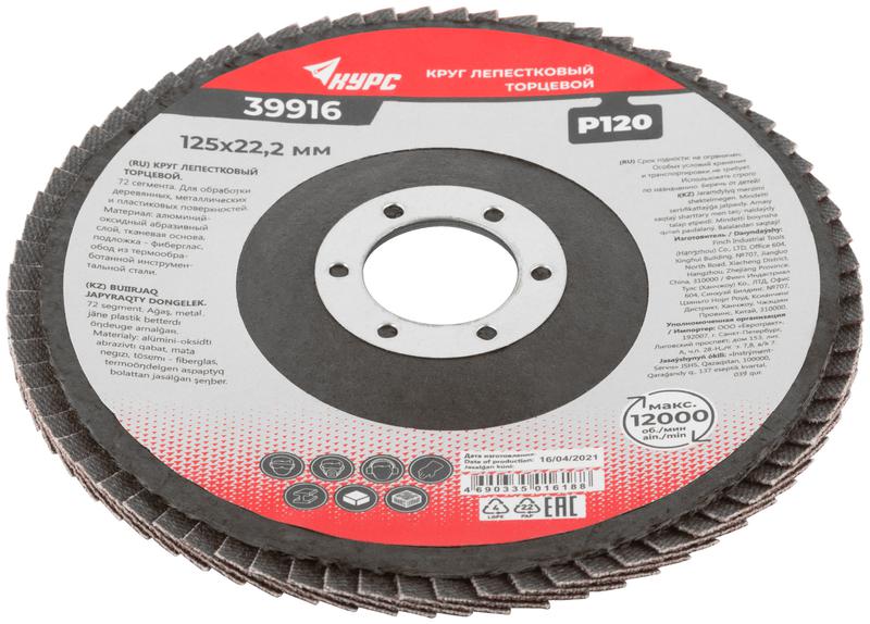 Круг лепестковый торцевой 125мм P 120 КУРС 39916 фото в каталоге от BTSprom.by