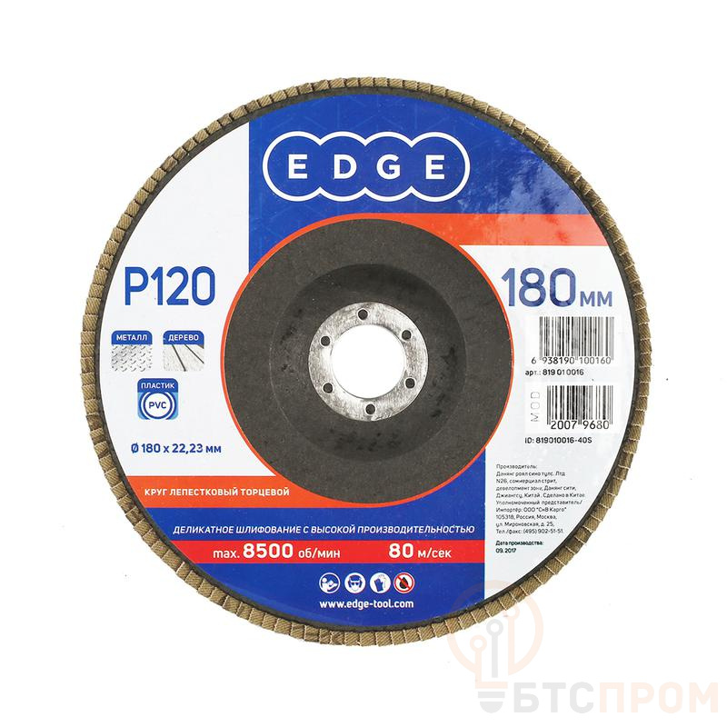 Круг лепестковый торцевой 180ммх22.23мм P120 PATRIOT 819010016 фото в каталоге от BTSprom.by
