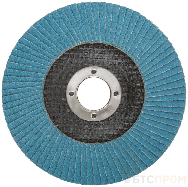 Круг наждачный лепестковый Cutop Profi Plus предназначен для обработки нержавеющей стали, металла, сварных швов, пластика, дерева. Для углошлифовальных машин. При изготовлении кругов используется высококачественный гибкий абразивный материал, состоящий из тканевой основы, на которую нанесен слой циркониевого электрокорунда. Круги на основе циркониевого электрокорунда имеют высокую прочность, коэффициент шлифования на кругах данного типа выше в несколько раз, чем у кругов на основе нормального электрокорунда, что особенно эффективно при работе с особо твёрдыми сортами металла. Структура циркониевого электрокорунда даёт эффект самозатачивания, что также увеличивает ресурс использования. Наполняемость диска составляет 80 лепестков с углом наклона 10 градусов, это позволяет увеличить КПД круга и его стойкость к износу в несколько раз.