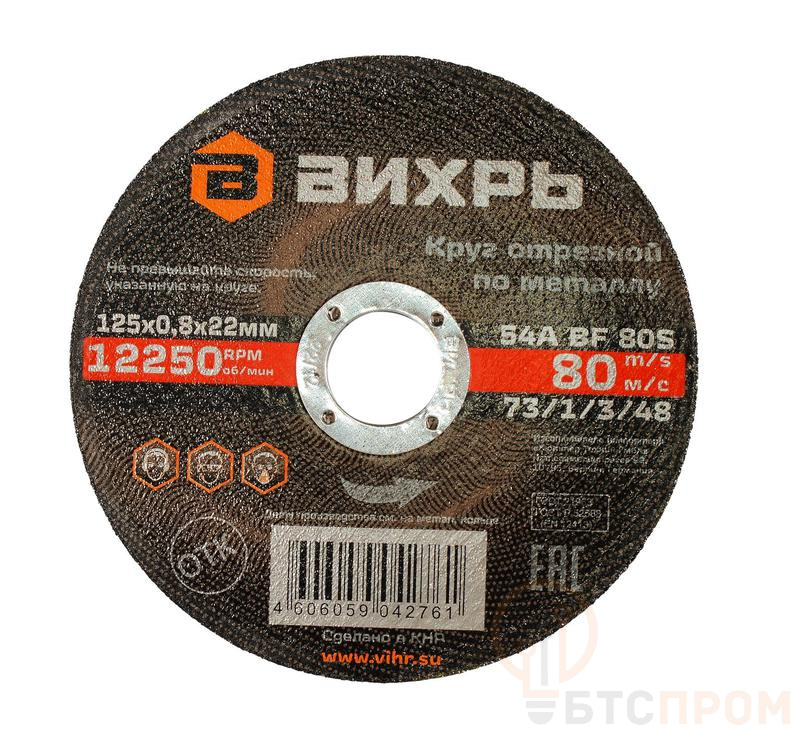Круг отрезной по металлу 125х0.8х22мм Вихрь 73/1/3/48 фото в каталоге от BTSprom.by