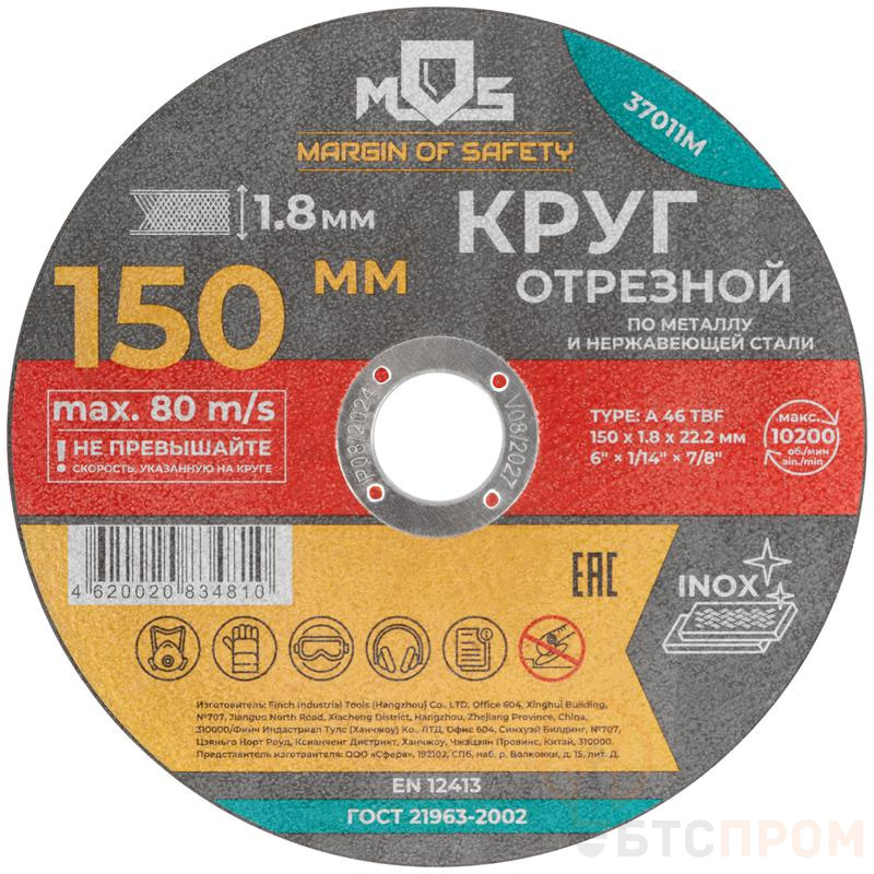 Абразивный. Для разрезания материалов из различных сталей и сплавов. Посадочный диаметр 22,2 мм. Материал: бакелит, армированный волокном.