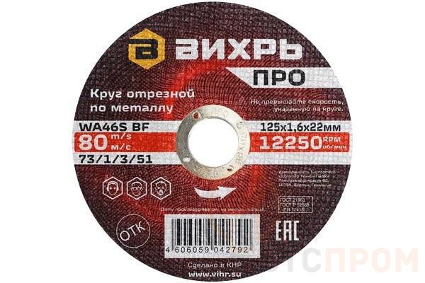 Круг отрезной по металлу ВИХРЬ 125х1.6х22 мм – это высококачественный абразивный инструмент, предназначенный для эффективной и точной резки черных металлов. Основой круга является прочный стекловолоконный каркас, что обеспечивает максимальную безопасность работы, предотвращая разрыв диска на высоких оборотах.