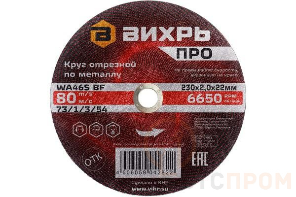 Круг отрезной по металлу ПРО 230х2.0х22мм Вихрь 73/1/3/54 фото в каталоге от BTSprom.by