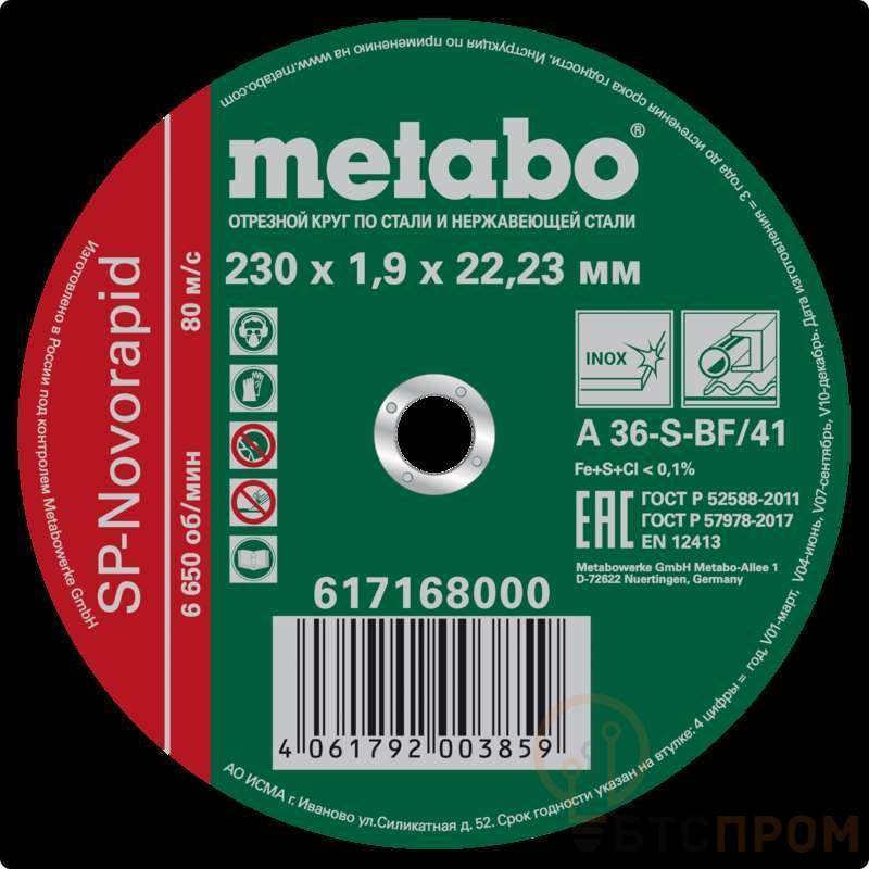 –Круг отрезной SP-Novorapid 230х1.9х22.23мм RU нерж. Metabo 617168000