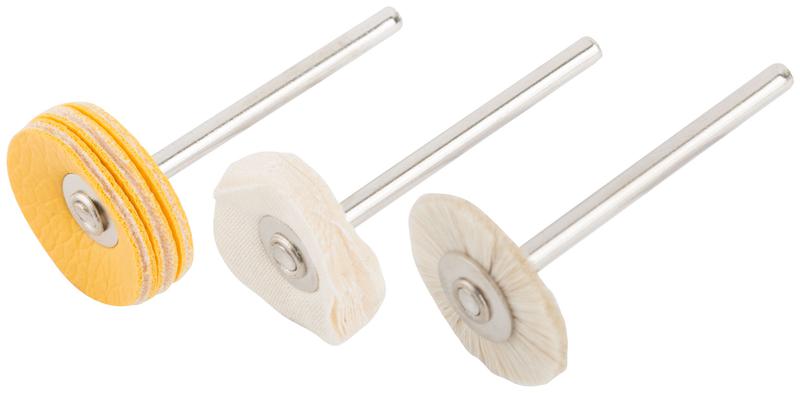 Набор полировальных кругов FIT IT предназначен для мягкой полировки различных поверхностей (сталь, алюминий, медь, камень, дерево, пластик). Используются с гравировальной машинкой и полировальной пастой. Включает в себя круги из хлопка, шерсти и поролона. Круги отличаются прочностью и износостойкостью. Благодаря гибкости круги можно использовать в труднодоступных местах.