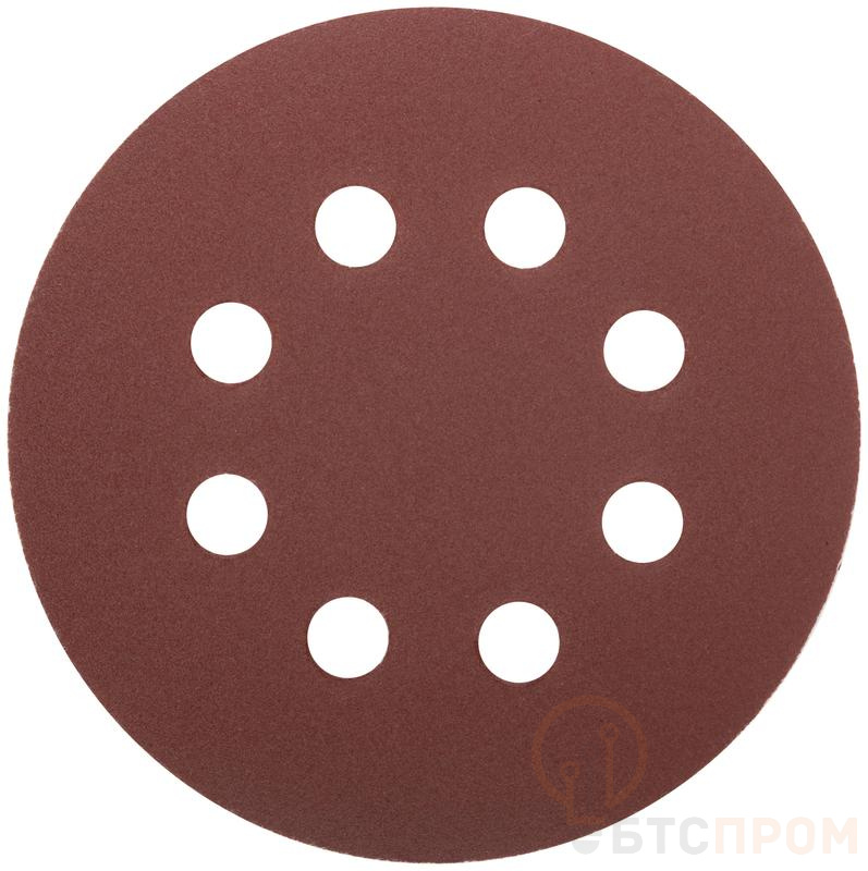 8 отверстий. На тканевой основе с «липучкой». Диаметр 125 мм, набор 5 шт. Для обработки различных материалов. Материал: х/б основа, абразивный слой - оксид алюминия.