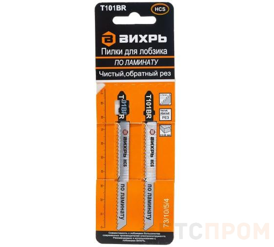 –Пилки для лобзика Т101ВR по ламинату чистый обратный рез 100х75мм (уп.2шт) Вихрь 73/10/5/4