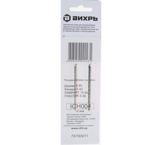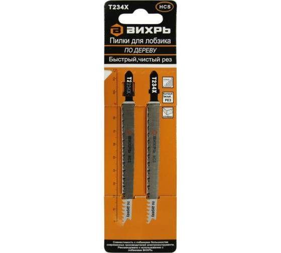 Пилки для лобзика Т234Х по дереву быстрый чистый рез прогрессирующий зуб 116х90мм (уп.2шт) Вихрь 73/10/5/11