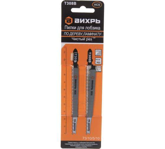 –Пилки для лобзика Т308В по дереву ламинату чистый рез 116х90мм (уп.2шт) Вихрь 73/10/5/10