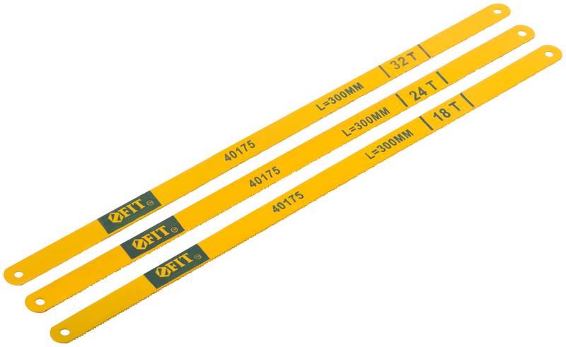 Полотна ножовочные пометаллу легированная сталь 20 Cr 300мм В блистере 3шт (18ТPI+24ТPI+32ТPI) (уп.3шт) FIT 40175