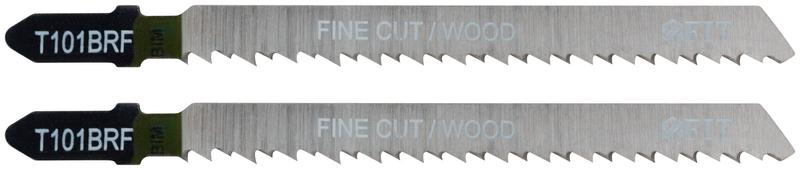 Комплект из двух полотен FIT IT (T101BRF) предназначен для прямого реза по дереву, ламинату, полимерным и эпоксидным материалам. Закалка рабочей части до твердости 62–65 HRC обеспечивает высокую износостойкость. Полотна не скалывают лицевую сторону поверхности за счет реверсивно направленной формы зубьев. Заточка зубьев повышает эффективность и качество реза. Зубья изготовлены из быстрорежущей стали (HSS) Р6М5 и имеют улучшенную стойкость к истиранию. Основа изготовлена из хром-ванадиевой стали и обладает высокой прочностью, термостойкостью и стойкостью к коррозии. Т-образный хвостовик европейского типа совместим с большинством моделей электролобзиков.