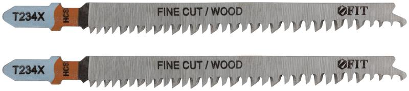 Комплект из двух полотен FIT IT (T234X) предназначен для прямого реза по дереву. Закалка рабочей части до твердости 62–65 HRC обеспечивает высокую износостойкость. Прогрессивный шаг зубьев способствует высокой скорости и чистоте пиления заготовок разной толщины. Шлифованные под свободным углом зубья без разводки повышают точность реза. Разносторонняя двухгранная заточка зубьев повышает эффективность работы. Т-образный хвостовик европейского типа совместим с большинством моделей электролобзиков.