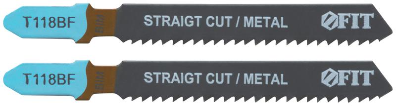 Комплект из двух полотен FIT IT (T118BF) предназначен для прямого реза по металлу. Закалка рабочей части до твердости 62–65 HRC обеспечивает высокую износостойкость. Шаг зубьев 2,0 мм способствует высокой скорости и чистоте реза металлов. Волнообразная разводка зубьев повышает скорость пропила и минимизирует вероятность заклинивания полотна во время работы. Зубья изготовлены из быстрорежущей стали (HSS) Р6М5 и имеют улучшенную стойкость к истиранию. Основа изготовлена из хром-ванадиевой стали и обладает высокой прочностью, термостойкостью и стойкостью к коррозии. Т-образный хвостовик европейского типа совместим с большинством моделей электролобзиков.