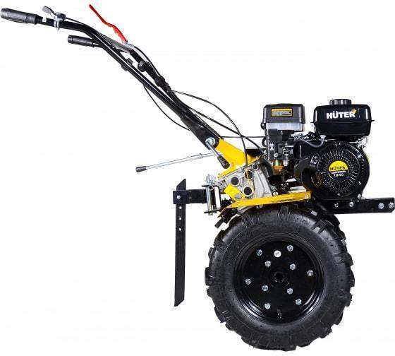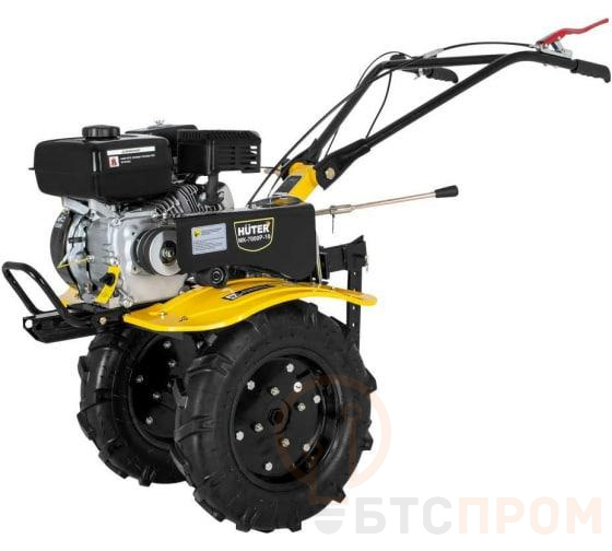 ОБЪЕМ ТОПЛИВНОГО БАКА, Л - 3.6 РАЗБЛОКИРОВКА ДИФФЕРЕНЦИАЛА - Нет ТИП ВОЗДУШНОГО ФИЛЬТРА - С маслянной ванной ТИП ДВИГАТЕЛЯ - Бензиновый 4-х тактный одноцилиндровый ТИП КОЛЕС - 4х10 ТИП ПРИВОДА - Ременный СКОРОСТИ - 2 вперед/1назад ШИРИНА ОБРАБОТКИ, СМ. - 100 ДИАМЕТР ФРЕЗ, СМ - 30 НОМИНАЛЬНАЯ МОЩНОСТЬ ДВИГАТЕЛЯ, Л.С. - 7 СТУПИЦА - Шестигранник 23 мм МАТЕРИАЛ КОРПУСА - Алюминиевый ТИП - Бензиновые Сельскохозяйственная машина HUTER МК-7000М-10 используется для обработки почвы методом культивации, то есть её рыхления без переворота почвы, выравнивания, других операций. Агрегат дает хорошие результаты на приусадебных и фермерских хозяйствах и дачных участках, на ограниченных территориях, междурядьях, на клумбах и возле деревьев. Мотокультиватор укомплектован четырёхтактным двигателем внутреннего сгорания.МК-7000М-10 обладает всеми преимуществами МК-7000, но комплектуется большими колесами 10. Устройство Двигатель. На сельскохозяйственных машинах HUTER применяются бензиновые двигатели внутреннего сгорания. Двигатели культиваторов снабжаются автоматическими регуляторами частоты вращения, упрощающими работу оператора. Диапазон номинальной мощности линейки наших культиваторов позволяет выбрать подходящий для любых видов работ Сцепление и редуктор обеспечивают передачу вращающего момента от двигателя на рабочий вал. Система агрегатирования предназначена для сопряжения машины с навесным оборудованием, которое устанавливается на рабочую ось или раму. Система управления. Так как вовремя земляных работ оператор шагает за сельскохозяйственной машиной, все органы управления должны приводиться в действие только руками оператора. Технические характеристики Мощность – определяет производительность культиватора. Чем мощнее двигатель установлен на культиватор, тем более жесткую почву и большую глубину он может обрабатывать. Скорости – позволяют выбрать подходящий диапазон для более качественной обработки почвы, а также облегчают извлечение из земли агрегата после окончания работ посредством задней передачи. Ширина обработки – зависит от установленных лезвий, может достигать до 85 см со стандартными лезвиями и до 120см с дополнительными. Чем больше ширина обработки, тем эффективней работа культиватора. Но бывает необходимо вспахивать узкие полоски земли, для чего лезвия имеют составное устройство, т.е. есть возможность обрабатывать полосы шириной 30 и 50см. Глубина обработки – зависит от мощности двигателя и установленных лезвий. Чем больше глубина обработки, тем более качественно и эффективно будет вспахана почва. Объем топливного бака – определяет время непрерывной работы культиватора без дозаправки. Особенности Возможность регулировки глубины и ширины обработки почвы. Защита от низкого уровня масла. При уровне масла ниже допустимого сельскохозяйственные машины и мотокультиваторы Huter не заводятся глохнут, если это случилось во время работы. Возможность выбрать скорость (для тяжелых и средних культиваторов) и две скорости работы "вперед и назад" для всей линейки культиваторов. Колесо в передней части сельскохозяйственной машины для удобства перемещения, либо стояночная опора (сошник) в задней для удобства хранения. Возможность простой разборки культиватора обеспечивает удобство при транспортировке и хранении.