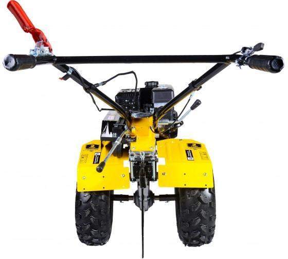 Тип двигателя 4Т одноцилиндровый, бензиновый Вес, кг 60 кг Мощность, л.с. 7.5 Бренд Huter Расход топлива, гр/кВт в час 375 Габариты упаковки 0.681 х 0.681 х 0.681 м Передачи 2 вперед / 1 назад Ширина обработки, см 100 Диаметр фрез, см 30 Объем топливного бака, л 3.6 Тип редуктора Шестерёнчато-цепной Ступица Шестигранник 23 мм Тип колес 19х7-8 Тип привода активной навески Ременный Класс Средней тяжести Пониженная первая передача Нет Разблокировка дифференциала Нет Корпус редуктора Чугунный Электростартер Нет Тип воздушного фильтра С масляной ванной Cельскохозяйственная машина HUTER МК-7500Р BIG FOOT – используется в фермерских и садоводческих хозяйствах для обработки земли. Агрегат способен рыхлить почву, выравнивать верхний слой и равномерно распределять удобрение. Большая ширина вспашки (100 см) позволяет быстро обработать участок. Диаметр фрез - 30 см, глубина обработки регулируется сошником. Мотоблок оснащен 4-х тактным бензиновым двигателем мощностью 7.5 л.с., шестеренчато-цепным редуктором в чугунном корпусе и ременным типом привода, позволяющим установить навесное оборудование. Воздухофильтр с масляной ванной надежно защищает мотор от попадания пыли. Емкостью топливного бака 3.6 л, расход топлива 375 гр/кВт в час. Модель имеет 3 передачи: 2 вперед, 1 назад. Наличие заднего хода не даст застрять агрегату в грунте. Мотоблок оборудован защитным щитком, предохраняющим оператора и бензодвигатель. Прорезиненные рукоятки создают комфорт при работе. Отличительная особенность модели HUTER МК-7500Р BIG FOOT - большие колеса 19х7-8, которые не дадут машине увязнуть в грунте.