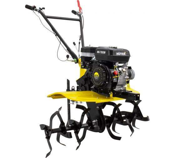 МОЩНОСТЬ, Л.С. - 7.8 ОБЪЕМ ТОПЛИВНОГО БАКА, Л - 3,6 РАЗБЛОКИРОВКА ДИФФЕРЕНЦИАЛА - Есть ТИП ВОЗДУШНОГО ФИЛЬТРА - С масляной ванной ТИП ДВИГАТЕЛЯ - Бензиновый 4-х тактный одноцилиндровый ТИП КОЛЕС - 4х10 ТИП ПРИВОДА - Ременный СКОРОСТИ - 4 вперед / 2 назад (перекидыванием ремня) ШИРИНА ОБРАБОТКИ, СМ. - 85 ДИАМЕТР ФРЕЗ, СМ - 33 СТУПИЦА - Круг 30 мм Сельскохозяйственная машина HUTER МК-7800М используется для обработки почвы методом культивации, то есть её рыхления без переворота почвы, выравнивания, других операций. Агрегат дает хорошие результаты на приусадебных и фермерских хозяйствах и дачных участках, на ограниченных территориях, междурядьях, на клумбах и возле деревьев. Мотокультиватор укомплектован четырёхтактным двигателем внутреннего сгорания. Устройство Двигатель. На сельскохозяйственных машинах HUTER применяются бензиновые двигатели внутреннего сгорания. Двигатели культиваторов снабжаются автоматическими регуляторами частоты вращения, упрощающими работу оператора. Диапазон номинальной мощности линейки наших культиваторов позволяет выбрать подходящий для любых видов работ. Сцепление и редуктор обеспечивают передачу вращающего момента от двигателя на рабочий вал. Система агрегатирования предназначена для сопряжения машины с навесным оборудованием, которое устанавливается на рабочую ось или раму. Система управления. Так как вовремя земляных работ оператор шагает за сельскохозяйственной машиной, все органы управления должны приводиться в действие только руками оператора. Технические характеристики Мощность – определяет производительность культиватора. Чем мощнее двигатель установлен на культиватор, тем более жесткую почву и большую глубину он может обрабатывать. Скорости – позволяют выбрать подходящий диапазон для более качественной обработки почвы, а также облегчают извлечение из земли агрегата после окончания работ посредством задней передачи. Ширина обработки – зависит от установленных лезвий, может достигать до 85 см со стандартными лезвиями и до 120см с дополнительными. Чем больше ширина обработки, тем эффективней работа культиватора. Но бывает необходимо вспахивать узкие полоски земли, для чего лезвия имеют составное устройство, т.е. есть возможность обрабатывать полосы шириной 30 и 50см. Глубина обработки – зависит от мощности двигателя и установленных лезвий. Чем больше глубина обработки, тем более качественно и эффективно будет вспахана почва. Объем топливного бака – определяет время непрерывной работы культиватора без дозаправки. Особенности Возможность регулировки глубины и ширины обработки почвы. Защита от низкого уровня масла. При уровне масла ниже допустимого сельскохозяйственные машины и мотокультиваторы Huter не заводятся глохнут, если это случилось во время работы. Возможность выбрать скорость (для тяжелых и средних культиваторов) и две скорости работы "вперед и назад" для всей линейки культиваторов. Колесо в передней части сельскохозяйственной машины для удобства перемещения, либо стояночная опора (сошник) в задней для удобства хранения. Возможность простой разборки культиватора обеспечивает удобство при транспортировке и хранении.