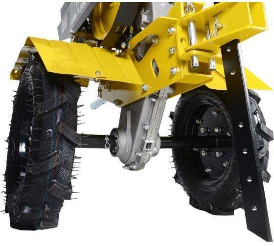 МОЩНОСТЬ, Л.С. - 7.8 ОБЪЕМ ТОПЛИВНОГО БАКА, Л - 3,6 РАЗБЛОКИРОВКА ДИФФЕРЕНЦИАЛА - Есть ТИП ВОЗДУШНОГО ФИЛЬТРА - С масляной ванной ТИП ДВИГАТЕЛЯ - Бензиновый 4-х тактный одноцилиндровый ТИП КОЛЕС - 4х10 ТИП ПРИВОДА - Ременный СКОРОСТИ - 4 вперед / 2 назад (перекидыванием ремня) ШИРИНА ОБРАБОТКИ, СМ. - 85 ДИАМЕТР ФРЕЗ, СМ - 33 СТУПИЦА - Круг 30 мм Сельскохозяйственная машина используются для обработки почвы методом культивации, то есть её рыхления без переворота почвы, выравнивания, других операций. Агрегат дает хорошие результаты на приусадебных и фермерских хозяйствах и дачных участках, на ограниченных территориях, междурядьях, на клумбах и возле деревьев. Устройство Двигатель. На сельскохозяйственных машинах HUTER применяются бензиновые двигатели внутреннего сгорания. Двигатели культиваторов снабжаются автоматическими регуляторами частоты вращения, упрощающими работу оператора. Диапазон номинальной мощности линейки наших культиваторов позволяет выбрать подходящий для любых видов работ. Сцепление и редуктор обеспечивают передачу вращающего момента от двигателя на рабочий вал. Система агрегатирования предназначена для сопряжения машины с навесным оборудованием, которое устанавливается на рабочую ось или раму. Система управления. Так как вовремя земляных работ оператор шагает за сельскохозяйственной машиной, все органы управления должны приводиться в действие только руками оператора. Технические характеристики Мощность – определяет производительность культиватора. Чем мощнее двигатель установлен на культиватор, тем более жесткую почву и большую глубину он может обрабатывать. Скорости – позволяют выбрать подходящий диапазон для более качественной обработки почвы, а также облегчают извлечение из земли агрегата после окончания работ посредством задней передачи. Ширина обработки – зависит от установленных лезвий, может достигать до 85 см со стандартными лезвиями и до 120см с дополнительными. Чем больше ширина обработки, тем эффективней работа культиватора. Но бывает необходимо вспахивать узкие полоски земли, для чего лезвия имеют составное устройство, т.е. есть возможность обрабатывать полосы шириной 30 и 50см. Глубина обработки – зависит от мощности двигателя и установленных лезвий. Чем больше глубина обработки, тем более качественно и эффективно будет вспахана почва. Объем топливного бака – определяет время непрерывной работы культиватора без дозаправки. Особенности Возможность регулировки глубины и ширины обработки почвы. Защита от низкого уровня масла. При уровне масла ниже допустимого сельскохозяйственные машины и мотокультиваторы Huter не заводятся глохнут, если это случилось во время работы. Возможность выбрать скорость (для тяжелых и средних культиваторов) и две скорости работы "вперед и назад" для всей линейки культиваторов. Колесо в передней части сельскохозяйственной машины для удобства перемещения, либо стояночная опора (сошник) в задней для удобства хранения. Возможность простой разборки культиватора обеспечивает удобство при транспортировке и хранении.