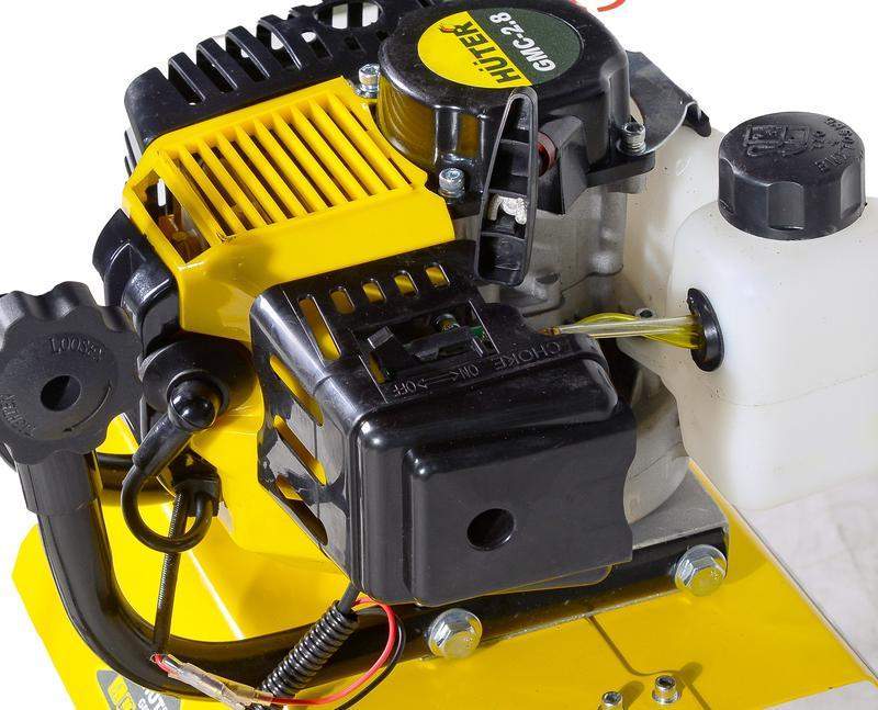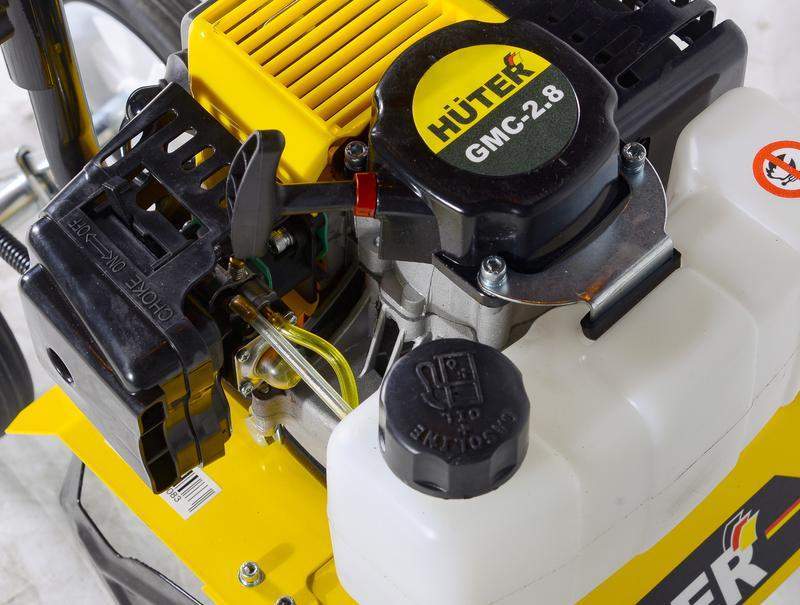 Модель мотокультиватора GMC-2.8 относится к категории инструментов для осуществления рыхления лёгкой почвы на небольших по площади участках мягкого грунта. Для обработки тяжёлых почв эта модель не подходит. Мотокультиватор оснащён 2-х тактным одноцилиндровым бензиновым двигателем внутреннего сгорания мощностью 2.8 л.с. с ручным пуском и системой воздушного охлаждения. Инструмент лёгкий и манёвренный. Ручки мотокультиватора складные, что значительно облегчает переноску инструмента и его хранение. При этом HUTER GMC-2.8 позволит работать на довольно узких участках – в междурядьях, на клумбах, грядках, в местах возле деревьев и кустарников. Ширина культивации – 28см, глубина – 12см. Культиватор имеет удобные рукоятки с расположенными на них элементами управления, а также специальный защитный щиток, который не допускает попадание земли в двигатель и на пользователя. Для приготовления топливной смеси производитель рекомендует использовать фирменное полусинтетическое моторное масло для двухтактных двигателей «HUTER 2T» в соотношении бензин/масло 40:1. Мотокультиватор HUTER GMC-2.8 – более мощный собрат GMC-1.8. Тип двигателя Двухтактный Вес, кг 16.48 кг Мощность, л.с. 2.8 Бренд Huter Расход топлива, гр/кВт в час 375 Габариты упаковки 0.416 ? 0.416 ? 0.416 м Передачи 1 вперед Ширина обработки, см 28 Диаметр фрез, см 24 Объем топливного бака, л 1,2
