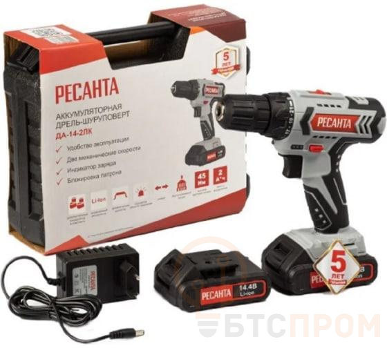 Дрель-шуруповерт аккумуляторная ДА-14-2ЛК Ресанта 75/14/4