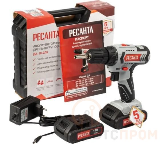 Дрель-шуруповерт аккумуляторная ДА-18-2ЛК Ресанта 75/14/5 фото в каталоге от BTSprom.by