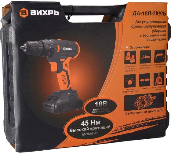 –Дрель-шуруповерт аккумуляторная ДА-18Л-2КУ/Б (2.0 А/ч) (бесщеточный двигатель) Вихрь 72/14/23