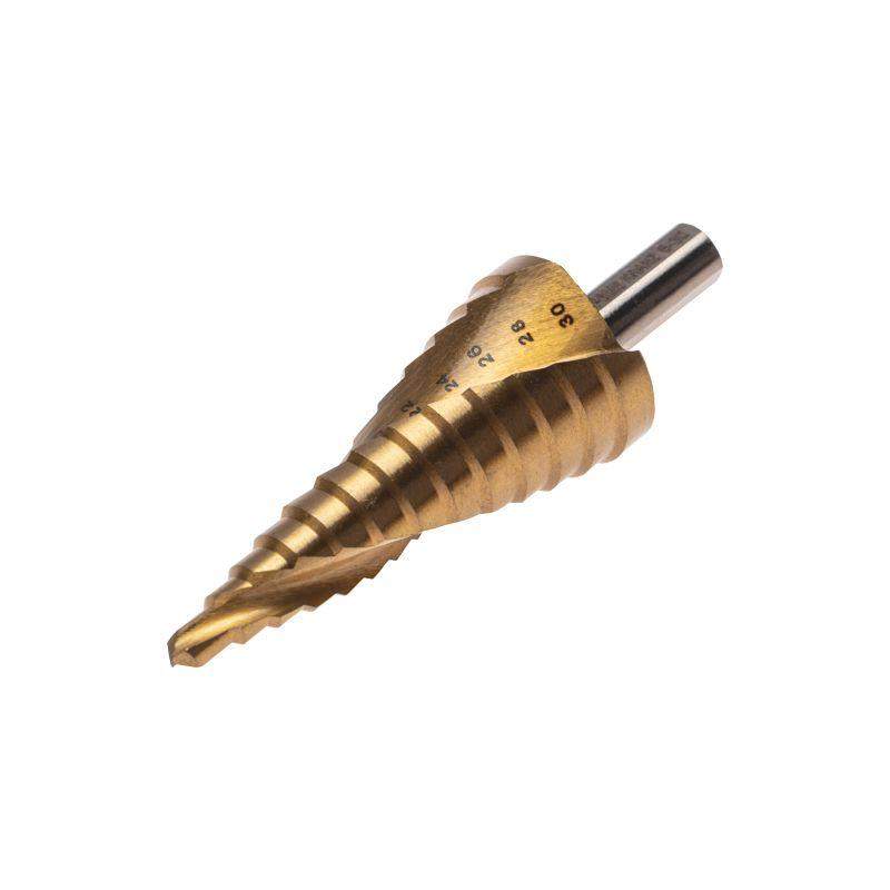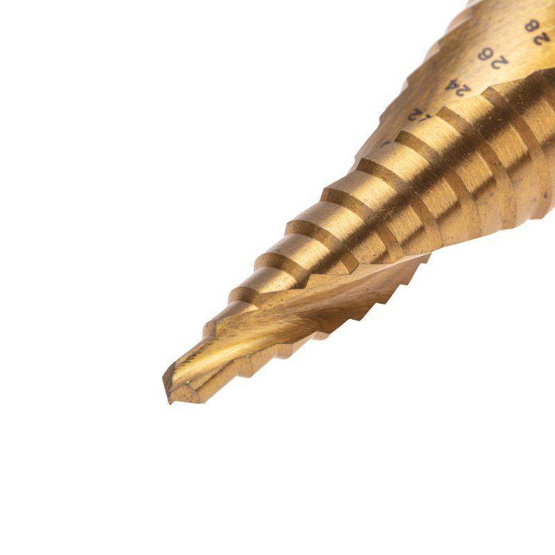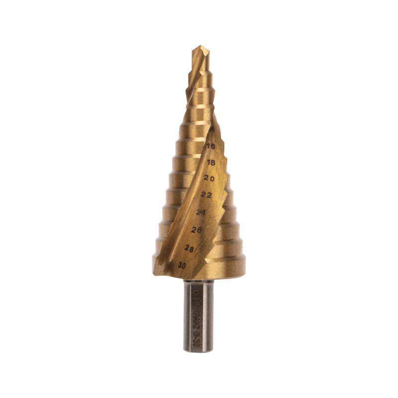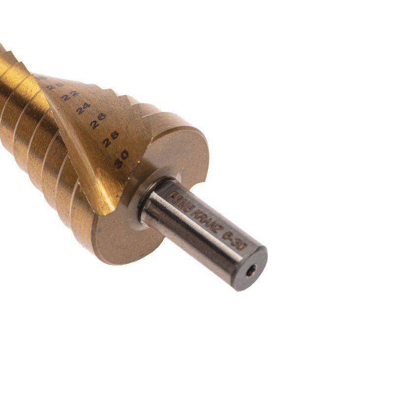 Сверло ступенчатое 6-8-10-12-14-16-18-20-22-24-26-28-30мм Р6М5 ТИТАН трехгр. хвостовик Kranz KR-12-6616