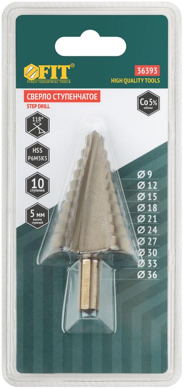 Сверло ступенчатое HSS Co5% (Р6М5К5) пометаллу 10 ступеней 9-36мм FIT 36393 фото в каталоге от BTSprom.by