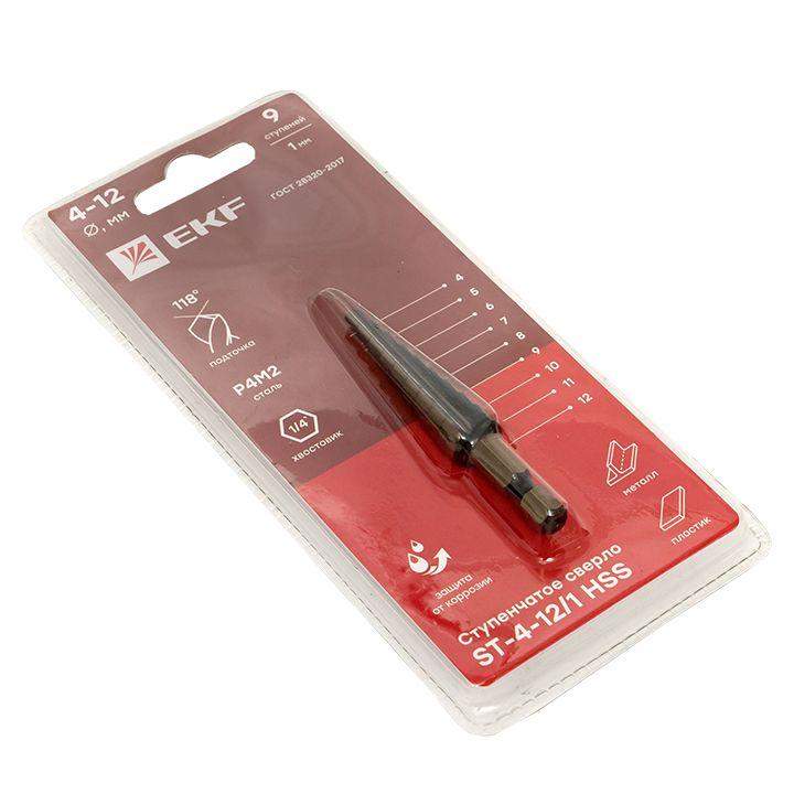 Сверло ступенчатое ST-4-12/1 HSS 9 ступ. EKF ST-4-12/1 фото в каталоге от BTSprom.by