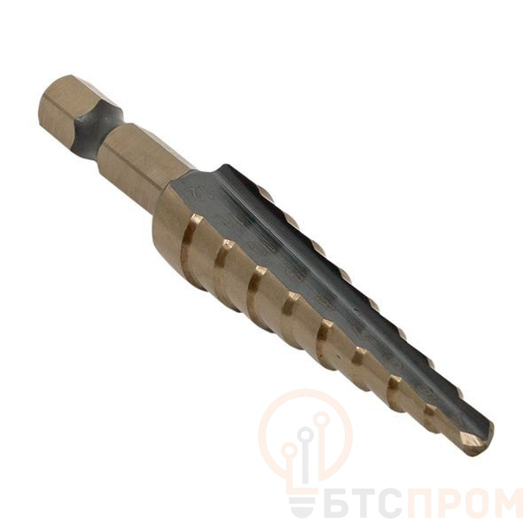 Ступенчатые сверла применяются для быстрого и малошумного сверления отверстий большого диаметра в листовых материалах- металле и пластике с помощью ручных электрических или аккумуляторных инструментов. В электромонтаже удобно применять при сверлении отверстий под сигнальные лампы, тумблеры, сальники и т.п. В ассортименте четный и нечетный ряд для различных видов работ. Изготовлены из быстрорежущей стали, легированные кобальтом для повышения износостойкости. При сверлении отверстия сразу снимается фаска- не требуется дополнительная обработка края отверстия.