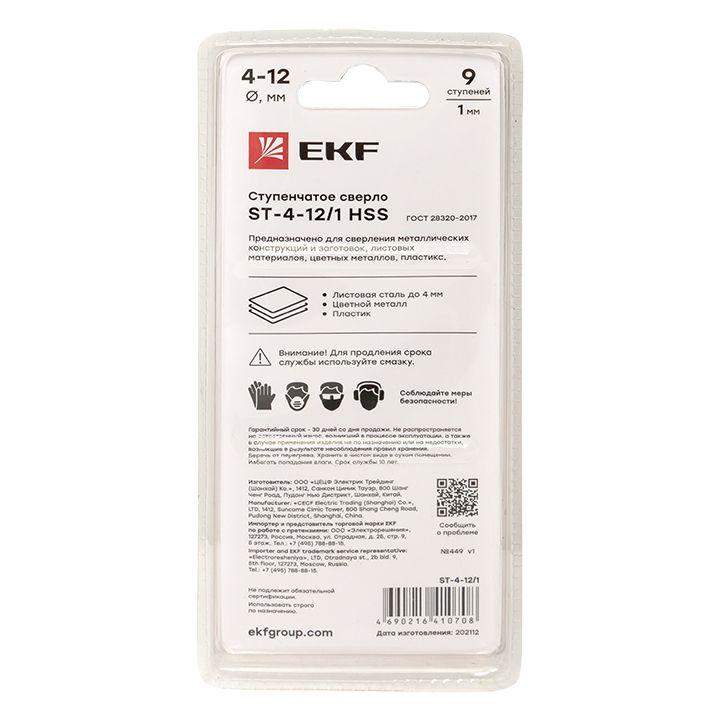 –Сверло ступенчатое ST-4-12/1 HSS 9 ступ. EKF ST-4-12/1