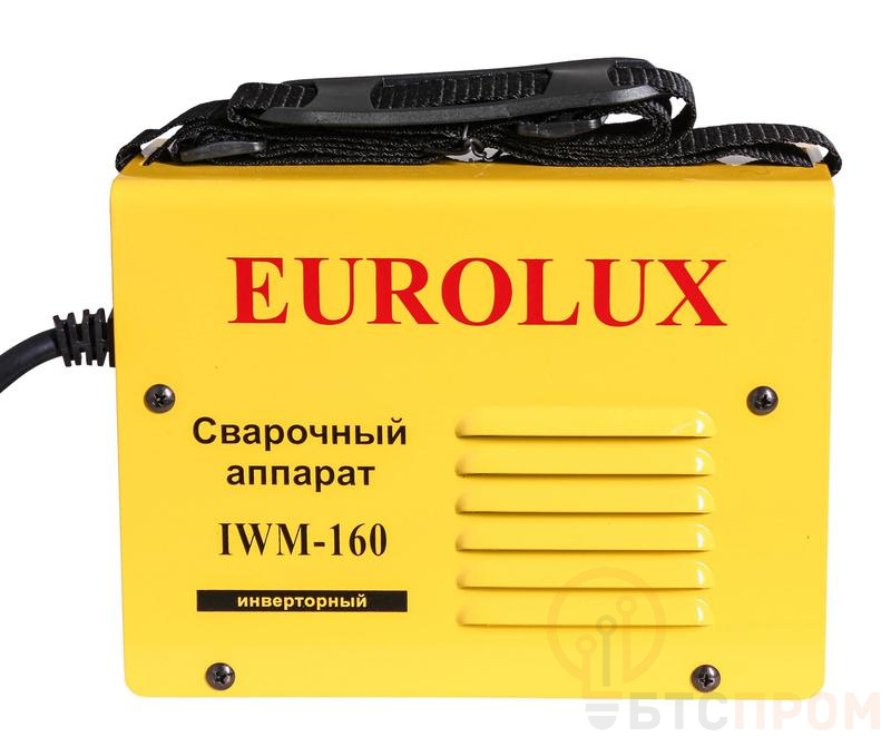 "Сварочный аппарат инверторный IWM160 Eurolux, Описание: Сварочный аппарат EUROLUX IWM160 предназначен для ручной электродуговой сварки элементов конструкций, выполненных из углеродистой или нержавеющей стали. Можно использовать для бытовой сварки дома, на даче, в гараже, а также в строительстве для устранения дефектов металлоконструкций и сварке металлоконструкций. Устройство сварочного аппарата Включает в себя сварочный аппарат, на передней панели которого расположен регулятор величины сварочного тока, силовые разъёмы для подключения сварочных кабелей, индикаторы «сеть» и «перегрев». С помощью регулятора сварочного тока можно выставить нужный ток в зависимости от толщины сварного электрода. В силовые разъёмы подключаются, соответственно, на минус - кабель, который идёт на массу (свариваемую деталь), на плюс - кабель, зажим которого держит электрод. Индикатор «сеть» загорается при включении прибора. Индикатор «перегрев» загорается при перегревании прибора и выключается после его остывания до рабочей температуры. На задней панели расположен автоматический выключатель, который отключает прибор при перегреве и включает после остывания. Преимущества- Функция «ANTISTICK» (""Антизалипание""). В;случае продолжительности короткого замыкания более 1,5 секунд (прилипание электрода) аппарат прекращает подачу тока. Включение происходит автоматически.- Функция «Hot Start» (""Горячий старт""). Обеспечивает надёжное зажигание электрода за счёт кратковременного повышения сварочного тока в начале сварки. Повышенный ток гарантирует отличное расплавление и наилучшее качество шва даже в начале сварки. При использовании функции «Hot Start» отсутствуют непровары, высота шва в значительной степени уменьшается.- Система охлаждения проточного типа для постоянного притока холодного воздуха, который охлаждает радиаторы с помощью кулеров и решёток на передней и задней панели.- Защита от перегрева/перегрузки. Срабатывает в момент длительного использования при высоких температурах.- Вертикальная плата (покрытая лаком). Позволяет плате оставаться чистой, без пыли, что уберегает её от выгорания электронных компонентов. Обдув платы и охлаждение радиаторов обеспечивают вентиляторы.- Ремень для переноски. Широкий и регулируемый по высоте для транспортировки. Модели, представленные на фото, могут быть в обращении., Тип товаров: Сварочные аппараты инверторные EUROLUX, Напряжение холостого хода, В: 80, Напряжение дуги, В: 26,4 — 26,4, Рабочее напряжение, В: 160 — 260, Максимальный потребляемый ток, А: 22, Диапазон регулирования сварочного тока, А: 10 — 160, Продолжительность нагружения, %: 70% 160A, Максимальный диаметр электрода, мм: 3, Класс защиты: IP21, Вес в упаковке: 3.53 кг, Рабочий диапазон температуры окружающей среды, °C: -10 ... +40, Напряжение сети, В: 220, Гарантия, мес.: 12, Класс товара: Бытовой, Страна бренда: Швейцария, Страна производства: Китай, Вес без упаковки: 3.13 кг, Модель: IWM160, Тип: Инверторный, Комплектация: Сварочный аппарат 1 шт.Кабель с электрододержателем 1 шт.Кабель с клеммой заземления 1 шт.Паспорт (инструкция) 1 шт.Упаковка 1 шт., Габариты, см: 32 х 33,5 х 38, Тип сварки: дуговая (электродом, MMA), Серия: IWM, Серия: IWM, Размеры в коробке: 32 x 33.5 x 38 см"