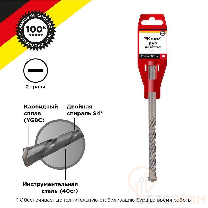 Бур по бетону 12х160мм SDS PLUS Kranz KR-91-0014 фото в каталоге от BTSprom.by