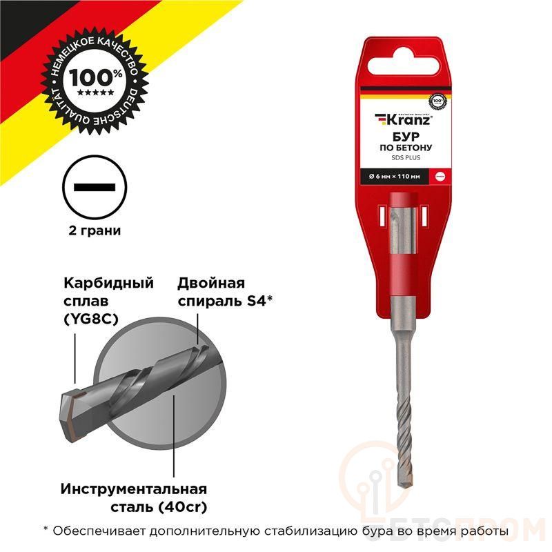 Бур по бетону 6x110мм SDS PLUS Kranz KR-91-0006 фото в каталоге от BTSprom.by
