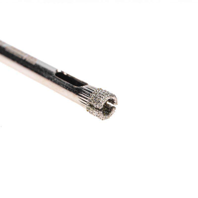 Алмазное сверло диаметром 6 мм предназначено для работ с керамогранитом, керамикой и стеклом. Представляет собой трубчатое сверло, выполненное в виде полого цилиндра. Используется совместно с дрелями или шуруповертами. Цилиндрический хвостовик способствует надежному креплению сверла в патроне. Режущая кромка покрыта промышленными алмазами высокой твердости, обеспечивающими точное и чистое сверление отверстий без трещин и сколов на поверхности материала. Для предотвращения перегрева в процессе сверления алмазные сверла необходимо постоянно охлаждать водой. При перегреве алмазы легко отделяются от основы, поэтому сверлить необходимо на малых оборотах.