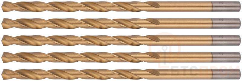 Удлиненные сверла по металлу с титановым покрытием FIT IT предназначены для сверления глубоких отверстий в углеродистых и легированных сталях, серых и ковких чугунах, цветных металлах и пластике. Сверла изготовлены из высококачественной быстрорежущей стали Р9М3, что обеспечивает их долговечность и надежность в использовании. Титановое покрытие увеличивает срок службы оснастки и обеспечивает точное и чистое сверление. Сверла изготовлены методом вышлифовки профиля, что повышает плавность сверления и чистоту готовых отверстий. Крестообразная форма наконечника и угол заточки 135° обеспечивают возможность сверления без предварительного кернения. Сверла имеют высший класс точности А1 и высверливают отверстия с высокоточным диаметром. Цилиндрический хвостовик сверл совместим с патронами большинства дрелей и шуруповертов.