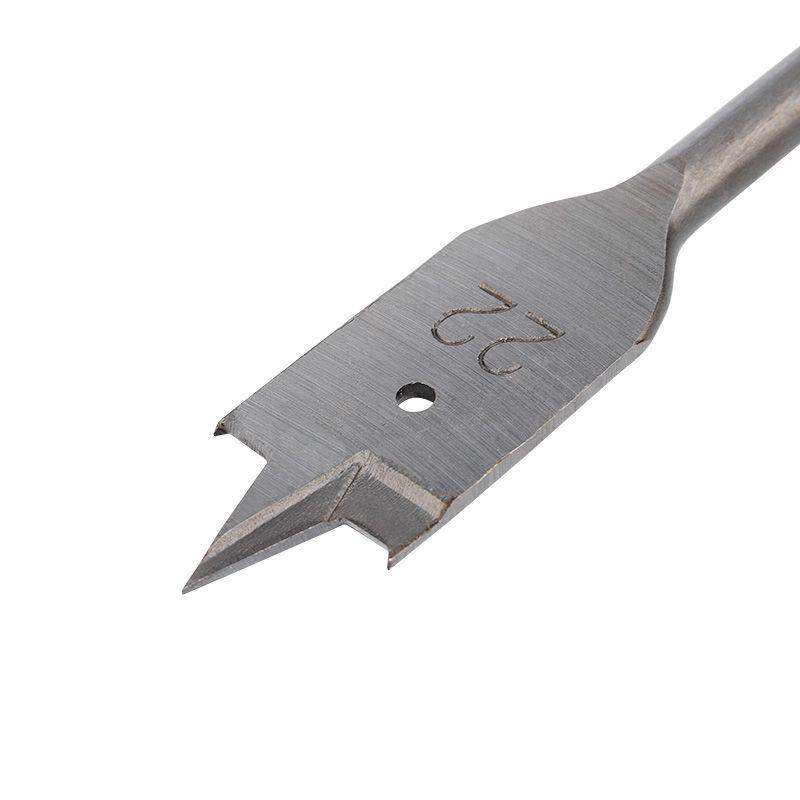 Перовое сверло предназначено для сверления отверстий в древесине мягких и твердых пород, ДВП, ДСП, фанере. Сверло выполнено из закаленной инструментальной стали, которая повышает износостойкость и долговечность инструмента. Состоит из рабочей части и шестигранного хвостовика. В центре рабочей части находится выступ, благодаря которому можно зафиксировать инструмент во время засверливания. С двух сторон от центрального выступа размещены режущие лезвия. Благодаря подрезателям на режущих кромках рабочей части в отверстиях получаются ровные края. Хвостовая часть, выполненная в виде шестигранника, надежно фиксирует сверло в патроне инструмента. Устанавливается на дрель или шуруповерт с высоким крутящим моментом.
