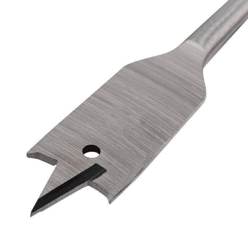 Перовое сверло предназначено для сверления отверстий в древесине мягких и твердых пород, ДВП, ДСП, фанере. Сверло выполнено из закаленной инструментальной стали, которая повышает износостойкость и долговечность инструмента. Состоит из рабочей части и шестигранного хвостовика. В центре рабочей части находится выступ, благодаря которому можно зафиксировать инструмент во время засверливания. С двух сторон от центрального выступа размещены режущие лезвия. Благодаря подрезателям на режущих кромках рабочей части в отверстиях получаются ровные края. Хвостовая часть, выполненная в виде шестигранника, надежно фиксирует сверло в патроне инструмента. Устанавливается на дрель или шуруповерт с высоким крутящим моментом.