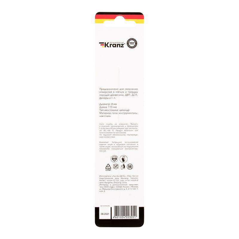 –Сверло по дереву 8х115мм цилиндрический хвостовик Kranz KR-91-0737
