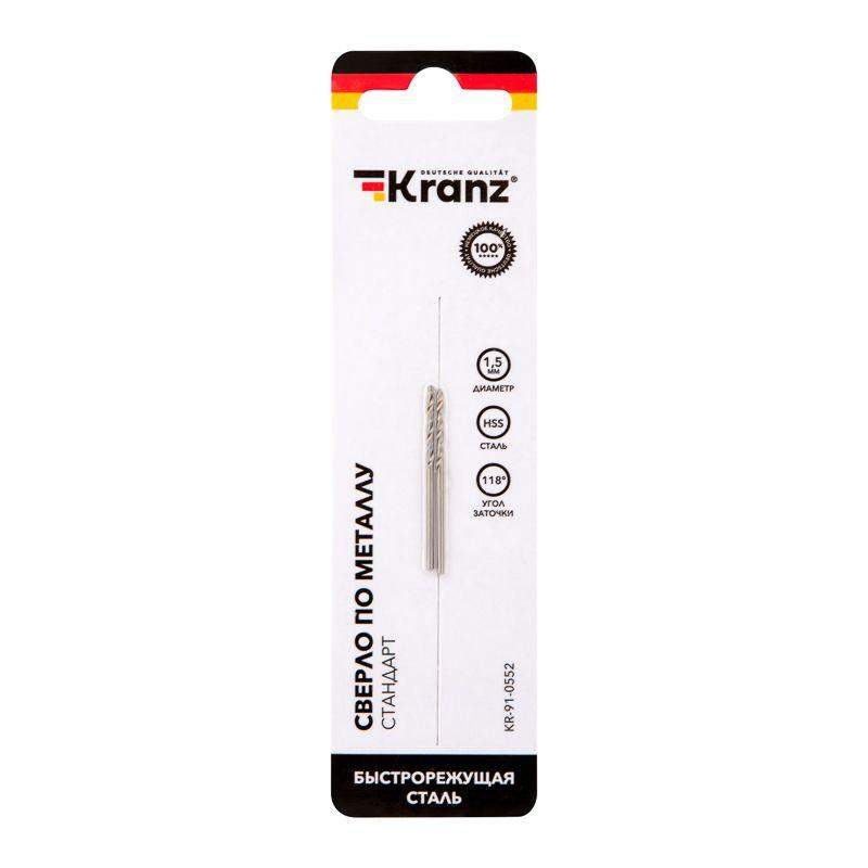 –Сверло по металлу 1.5мм HSS DIN 338 (уп.2шт) Kranz KR-91-0552