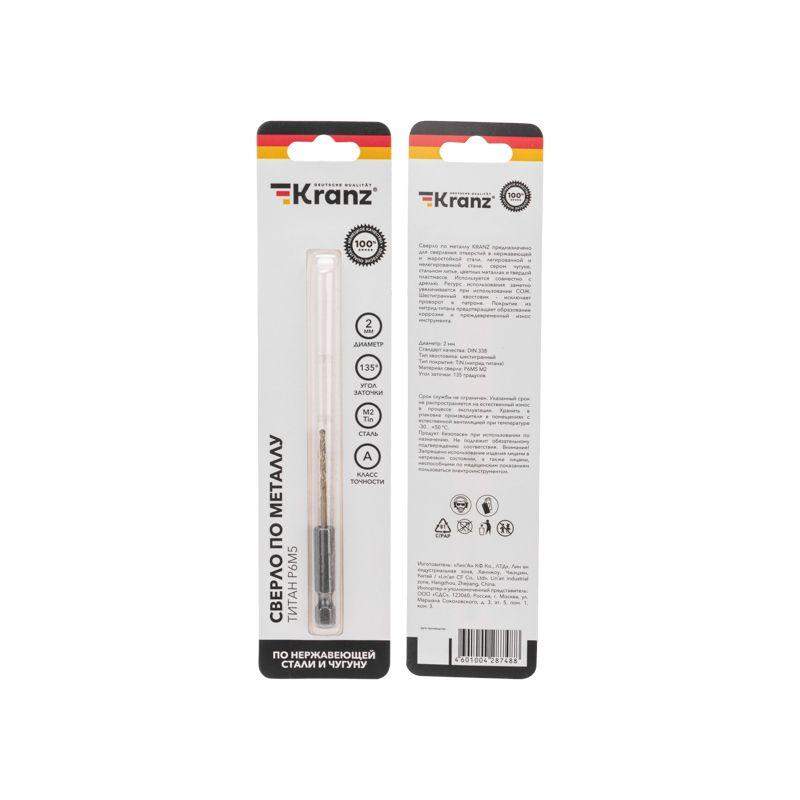 Сверло по металлу 2мм Р6М5 ТИТАН шестигранный хвостовик DIN 338 (уп.1шт) Kranz KR-91-5500