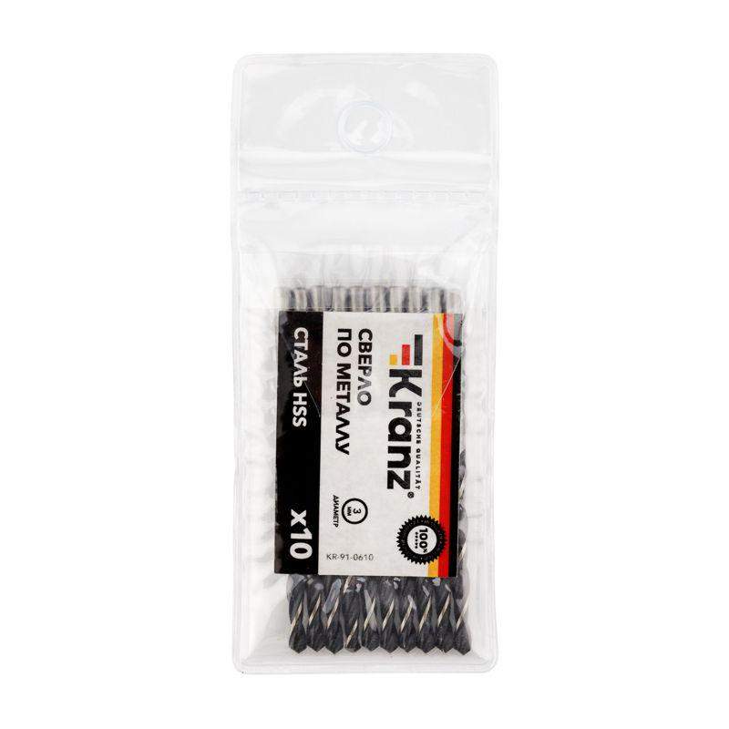 Сверло по металлу 3.0мм HSS DIN 338 (уп.10шт) Kranz KR-91-0610