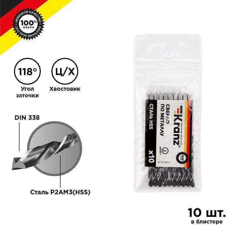 Сверло по металлу 3.0мм HSS DIN 338 (уп.10шт) Kranz KR-91-0610 фото в каталоге от BTSprom.by