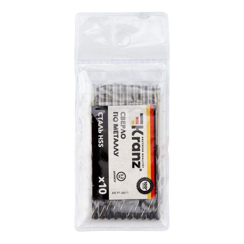 Сверло по металлу 3.2мм HSS DIN 338 (уп.10шт) Kranz KR-91-0611 фото в каталоге от BTSprom.by