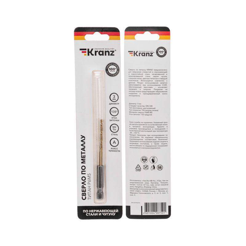 Сверло по металлу 3мм Р6М5 ТИТАН шестигранный хвостовик DIN 338 Kranz KR-91-5502 фото в каталоге от BTSprom.by