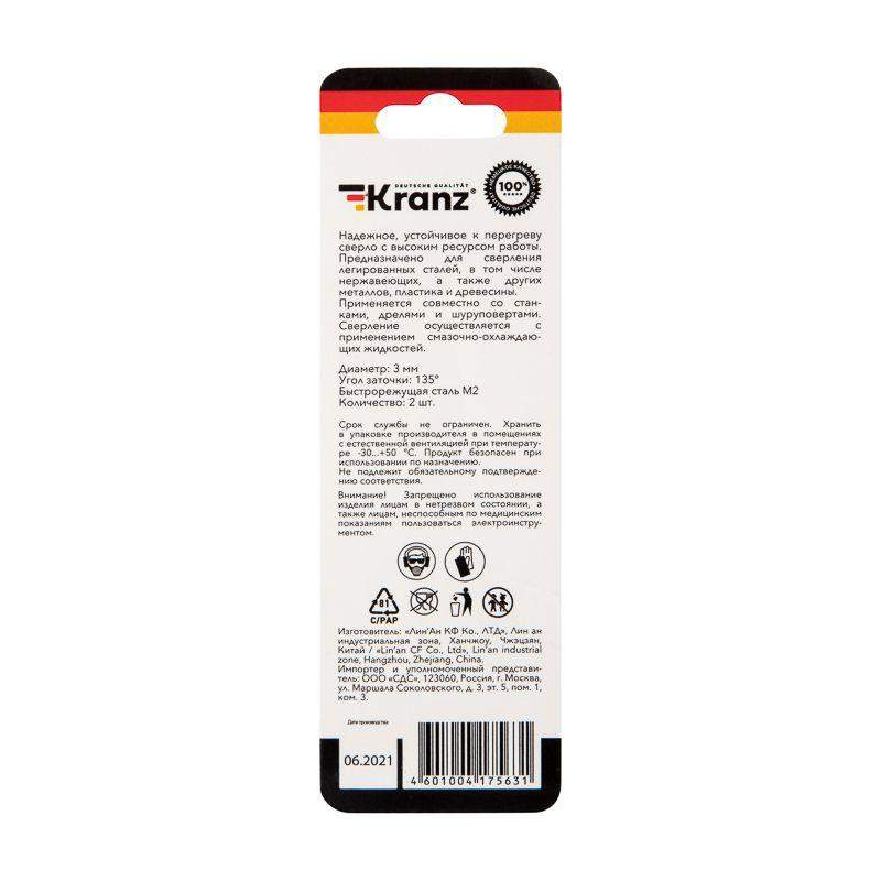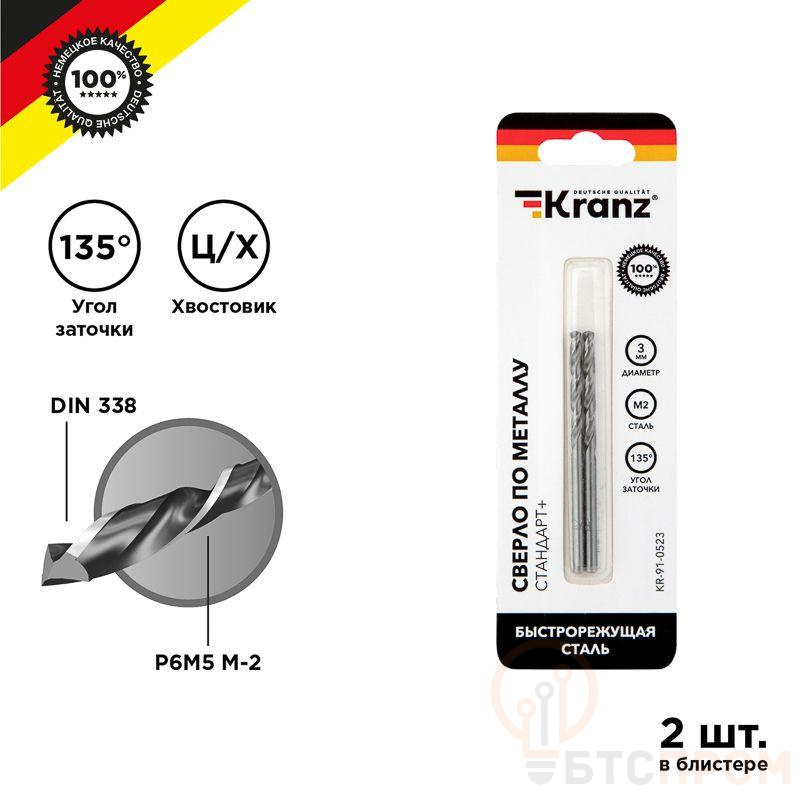Сверло по металлу KRANZ изготовлено по стандарту DIN 338 и используется для сверления отверстий в таких материалах, как сталь, чугун, нержавеющая сталь, цветные металлы и пластик. Применяется совместно с дрелями, шуруповертами и станками с цилиндрическим типом крепления. Изделие выполнено из качественной стали М2 (Р6М5), что обеспечивает высокую производительность, а также препятствует быстрому перегреву во время использования. Режущая часть инструмента заточена под углом 135 градусов, что способствует более эффективному проникновению в материал, уменьшая износ сверла. Благодяря вышлифованному профилю сверло сохраняет точное положение во время сверления, благодаря чему создаваемые отверстия приобретают ровную и аккуратную форму. Ресурс использования инструмента заметно увеличивается при использовании смазочно-охлаждающих жидкостей.
